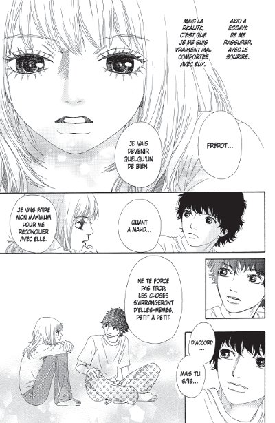 Certains éléments ont quand même su retenir mon attention. Certaines scènes font se poser des questions. Une grande interrogation demeure, Shiori a l'air d'apprécier son frère, on la voit rougir devant lui. Alors je ne sais pas si c'est moi qui me fais des films et si quelque chose est vraiment possible entre eux, ça ne m'étonnerait pas qu'ils ne soient finalement pas de la même famille. Wait and see. J'avoue que le petit ami ne me plaisant pas, il est trop sanguin et "béta" pour moi, mais à voir. Vers la fin, il a l'air de se calmer, donc on va lui laisser le bénéfice du doute. Ce n'est que le tome 1, donc à voir et l'autrice avait développée une romance compliquée dans son autre série donc tout est possible. Sinon, chapeau pour la fin, un retournement qui interpelle a lieu donnant très envie d'en savoir plus.
